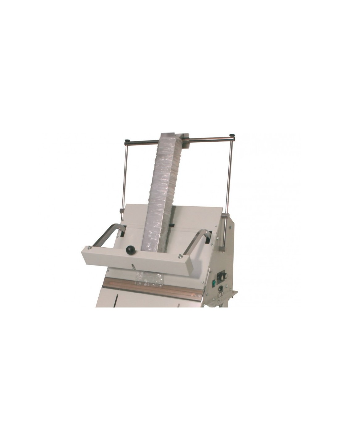 En lloc de dues barres de segellament, la màquina té una barra de segellament (industrial) amb una amplària de segellament d'aproximadament 5 mm i disposa d'un temporitzador addicional per a ajustar el temps de refredament necessari per a aconseguir un bon segellament.