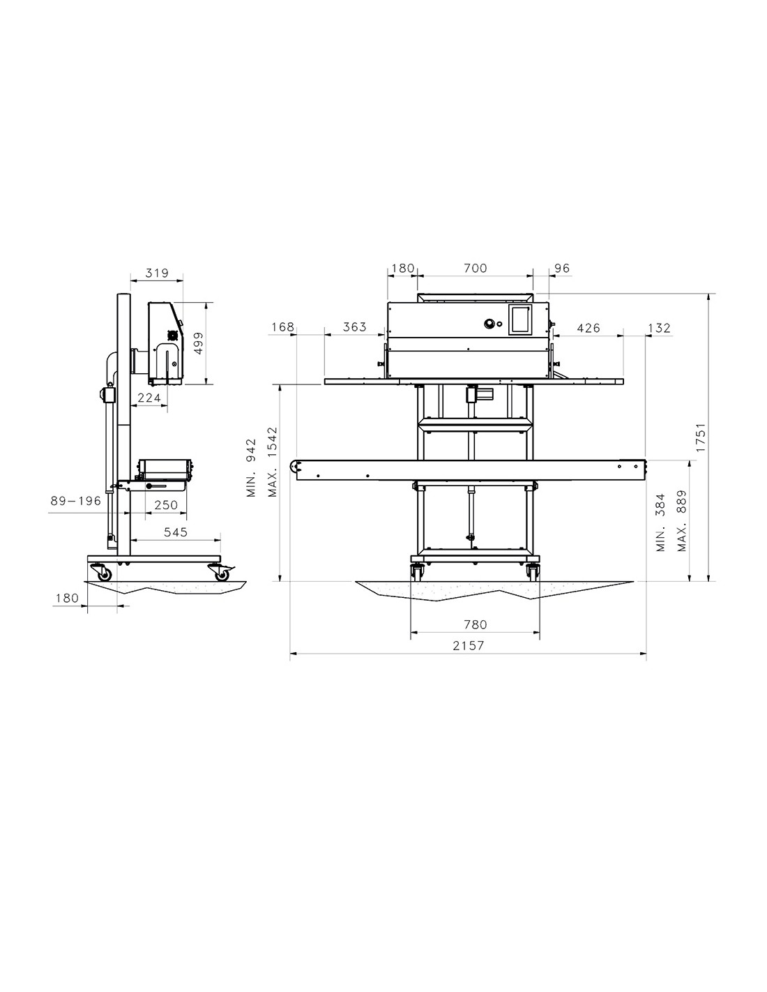 - Cabezal de sellado y altura de la cinta transportadora ajustables (ajuste mecánico o motorizado)
