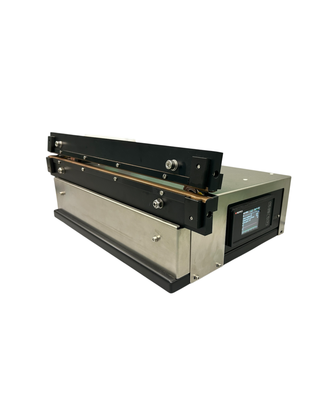 Equipada de serie con el nuevo controlador Ropex RESISTRON® RES 5450 para el control de la temperatura de soldadura,y con una cubierta en acero inoxidable AISI 304.